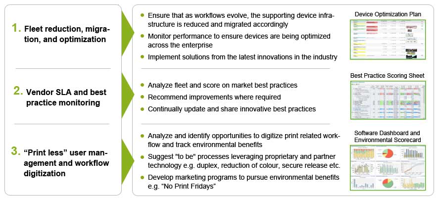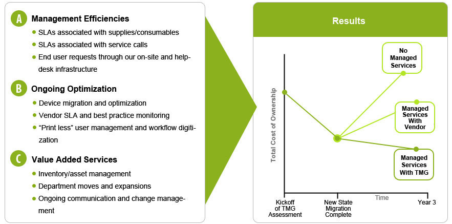 TMG will manage the vendor(s) and ensure best practices are being applied while pursuing sustainable print minimization strategies
